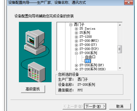 1.再設備內選擇西門子s7-200,接口選擇PPI,同時可以給設備自定義命名。