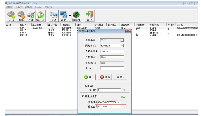 2.選擇COM口,需要與后面設置的虛擬串口一致。