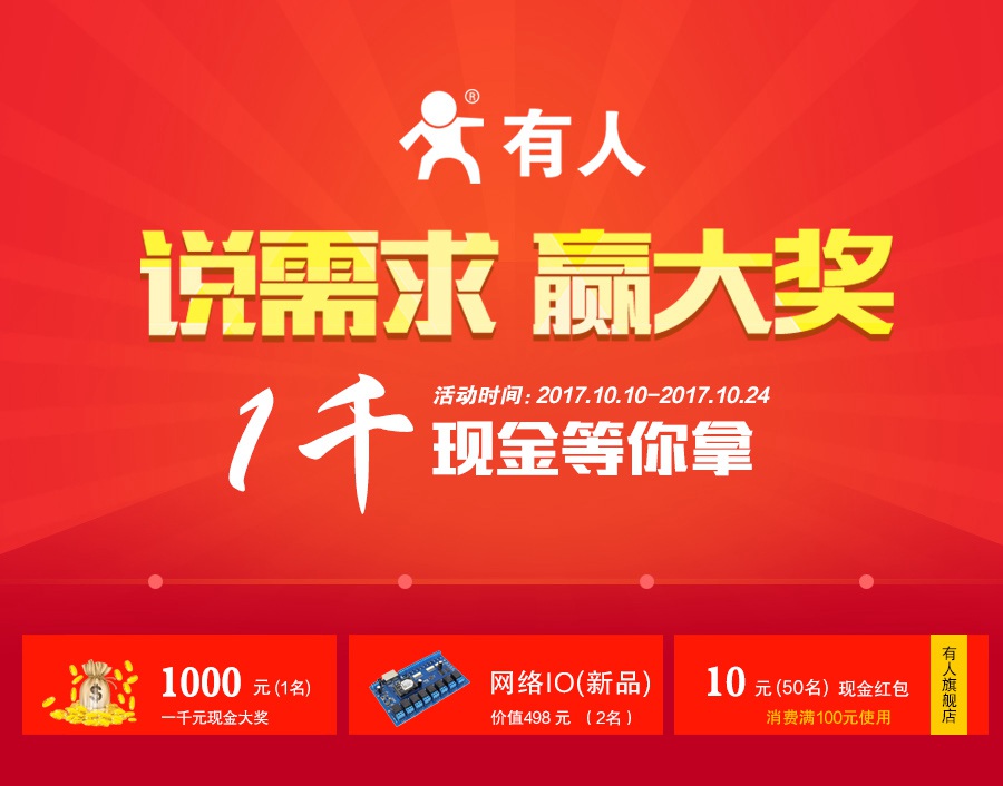 為了更好的了解用戶對網(wǎng)絡IO設備的使用選擇和實際需求;為了讓產品研發(fā)更有的放矢,解決用戶痛點。“有人物聯(lián)網(wǎng)”面向各行業(yè)發(fā)出有獎征集活動,說出你的真實需求和建議。