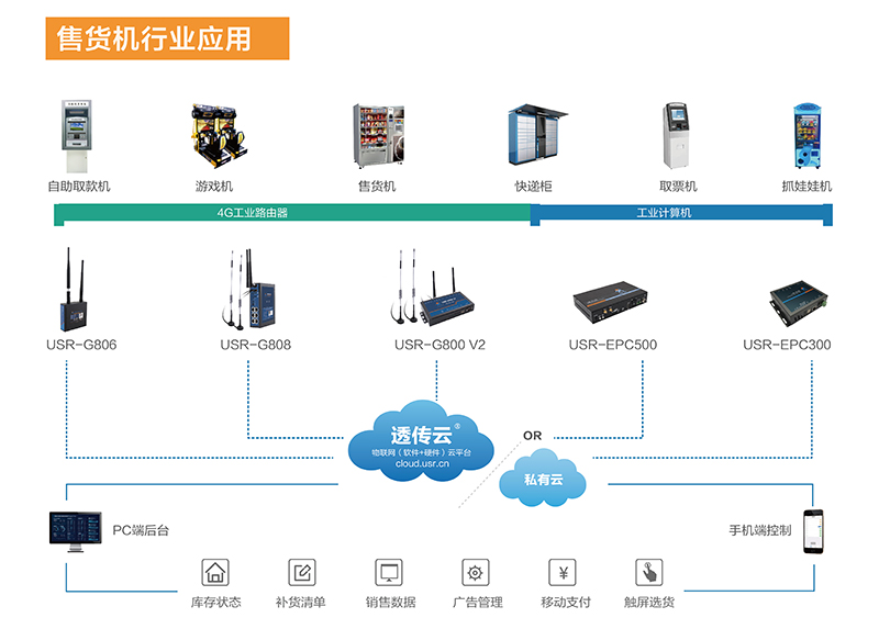 售貨機作為時下常見的消費終端,廣受運營商與消費者青睞。作為商品售賣的途徑之一,通過支付寶/微信進行支付消費,售貨機成為解決線上消費和線下體驗的核心樞紐。有人物聯網通過Wi-Fi/NB-IoT/GPRS/LTE等物聯網技術,將售貨機與云端后臺連接在一起,通過遠程方式控制售貨機,帶給用戶極致購物體驗。