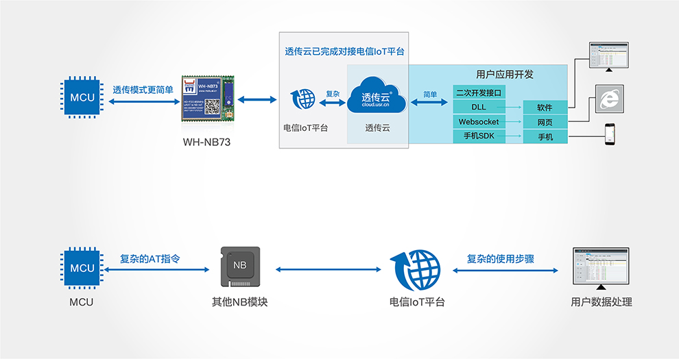 其二:使用NB-IoT模塊接入透傳云服務(wù),日后永久免費。