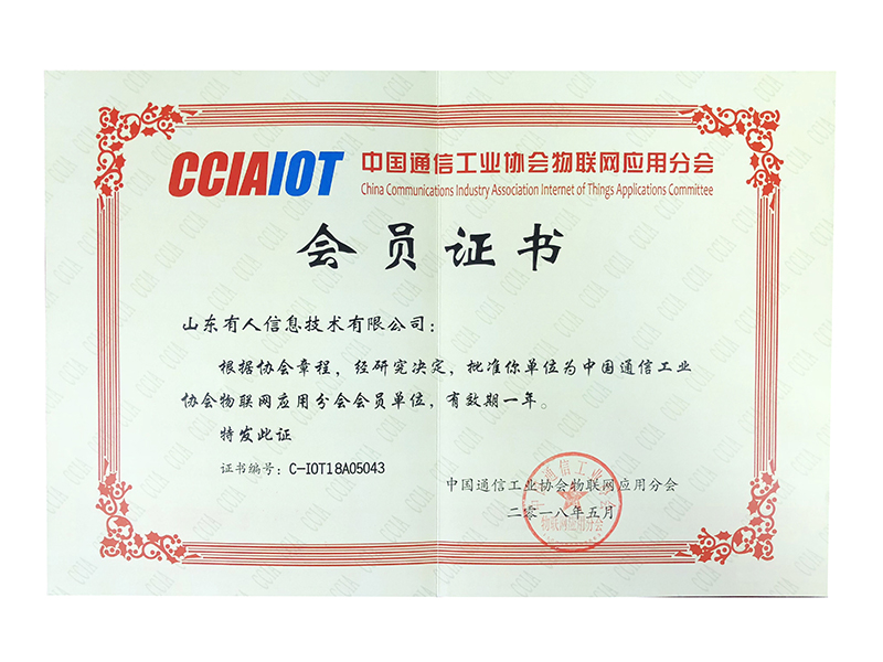 近日,山東有人信息技術有限公司受邀成為中國通信工業協會物聯網應用分會會員單位。