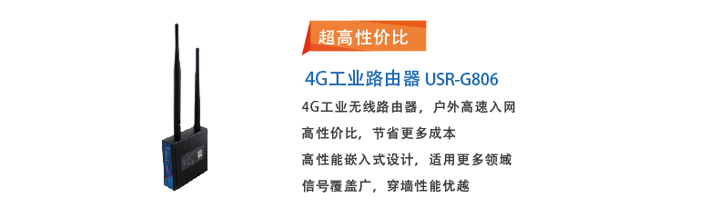 4G工業(yè)無線路由器一向是有人物聯(lián)網(wǎng)的“拳頭”產(chǎn)品,這次也成功“謀殺了一眾菲林”。USR-G806以高性價比聲名遠播,為用戶提供戶外高速入網(wǎng)需求,信號覆蓋廣、穿墻性能優(yōu)、嵌入式設(shè)計,適用諸多領(lǐng)域。