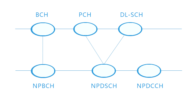 在NB-IoT系統中,數據鏈路層傳輸信道和物理層之間的映射關系進行了簡化。NB-IoT下行鏈路層傳輸信道和物理層之間的映射關系。