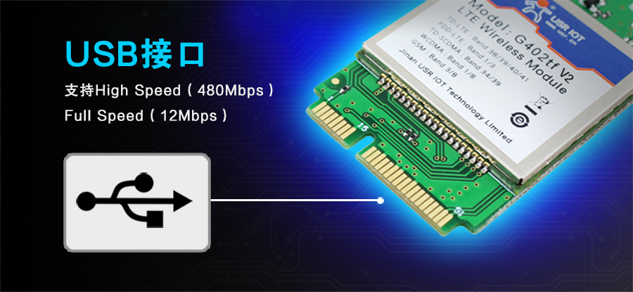 4G模塊G402tf有一路標(biāo)準(zhǔn)的USB2.0接口,支持High Speed(480Mbps)和Full Speed(12Mbps)兩種速度,可工作在HOST模式和DEVICE,USB接口和驅(qū)動(dòng)配合,可以在PC上映射多個(gè)串口。