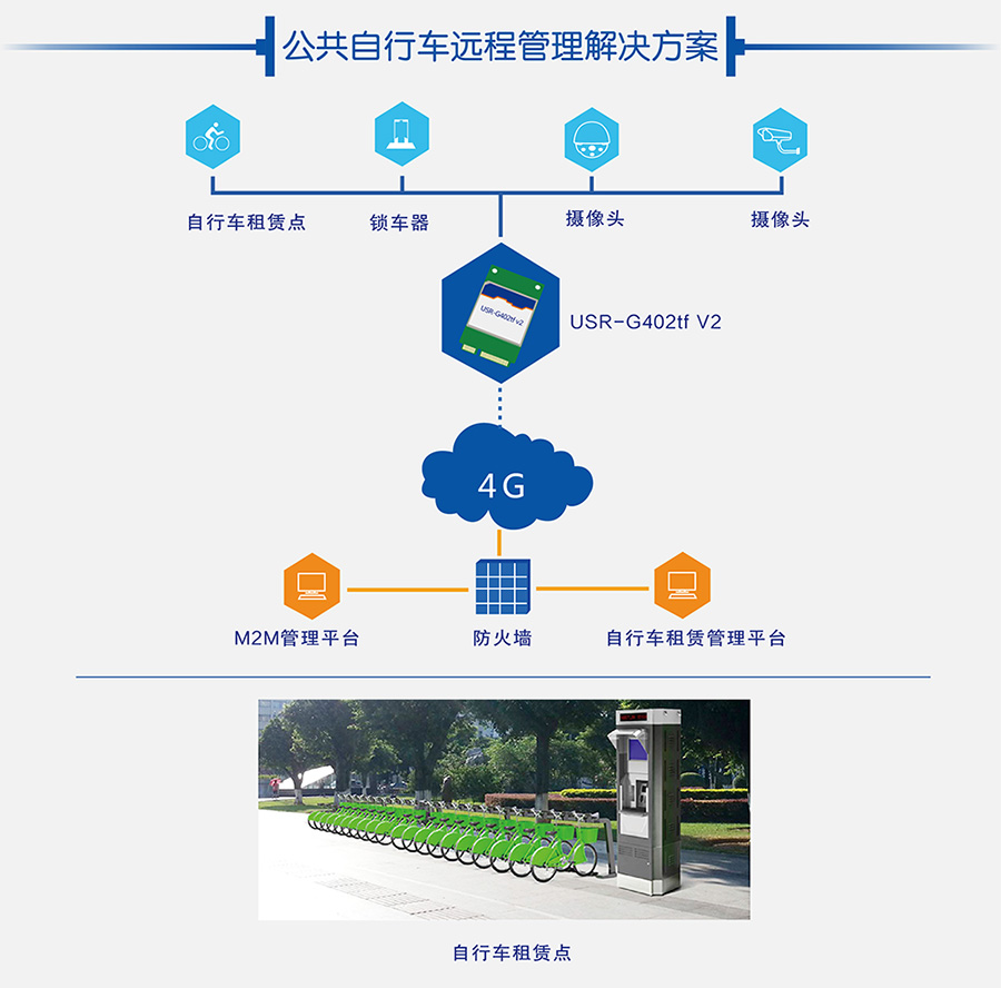 針對(duì)城市公共自行車(chē)分布分散,維修安全等問(wèn)題,采用4G模塊實(shí)現(xiàn)租賃點(diǎn)實(shí)時(shí)聯(lián)網(wǎng),對(duì)自行車(chē)樁位狀態(tài)和存/取車(chē)信息實(shí)時(shí)傳輸,提升了自行車(chē)租賃點(diǎn)規(guī)模與時(shí)效管理,提高服務(wù)質(zhì)量。