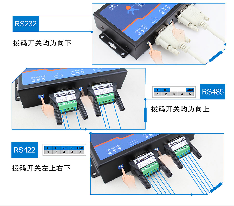 N520通過撥碼開關選擇串口通訊模式,非常方便操作,且簡單易懂