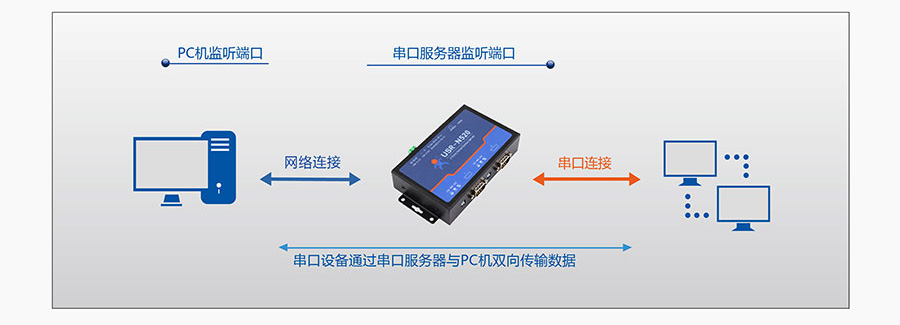 串口服務器同時監聽端口,將所有接收的數據轉發給串口設備。