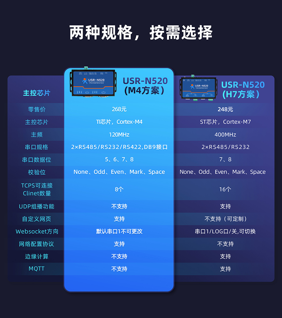 N520支持第二路網絡鏈接,適合將數據向兩個服務器發送的需求,