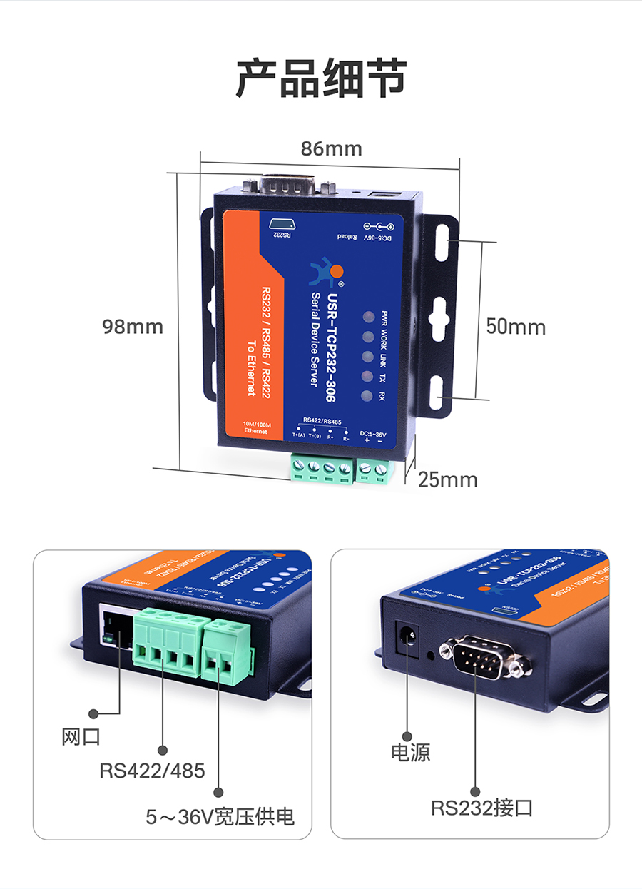 1 、1*RS232/485/422串口服務器USR-TCP232-306使用教程