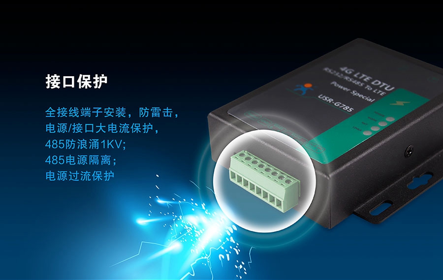 USR-G785 是一款高穩(wěn)定、抗干擾的工業(yè)級(jí)無(wú)線數(shù)據(jù)傳輸終端,專(zhuān)為電力行業(yè)設(shè)計(jì),為苛刻環(huán)境下無(wú)人值守的電力項(xiàng)目,提供穩(wěn)定的網(wǎng)絡(luò)通信。既可以實(shí)現(xiàn)常規(guī) DTU 的數(shù)據(jù)透?jìng)鞴δ埽部梢詫?shí)現(xiàn)電力專(zhuān)屬協(xié)議透?jìng)鞴δ堋Mㄟ^(guò)簡(jiǎn)單的 AT指令進(jìn)行設(shè)置,即可輕松使用本產(chǎn)品實(shí)現(xiàn)串口到網(wǎng)絡(luò)服務(wù)器的雙向數(shù)據(jù)傳輸。