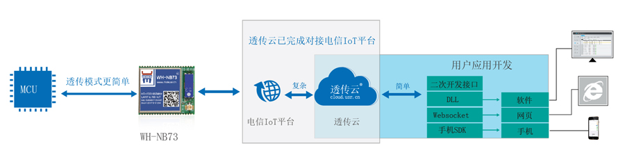第一種傳輸形式,有人云已完成對接電信IoT平臺,為用戶省去繁瑣的操作步驟,方便用戶在MCU與處理器之間快速透傳。