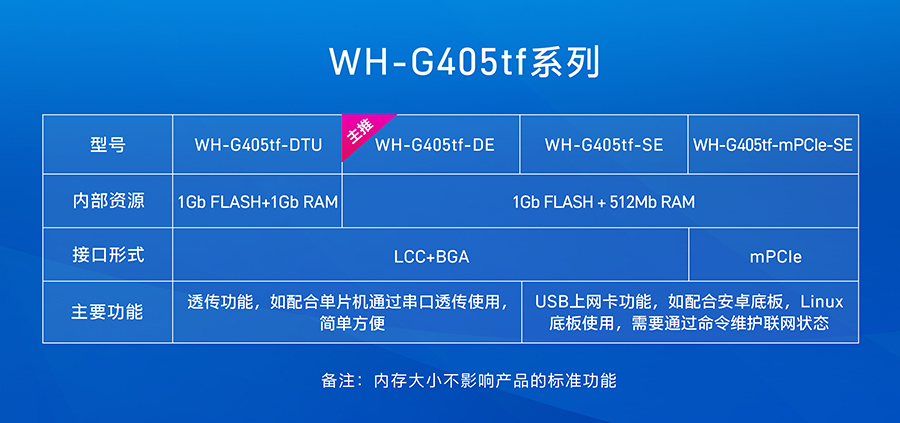 WH-G405tf是一款五模十三頻4G模塊,適用于需要高速數據傳輸及大數據量穩定