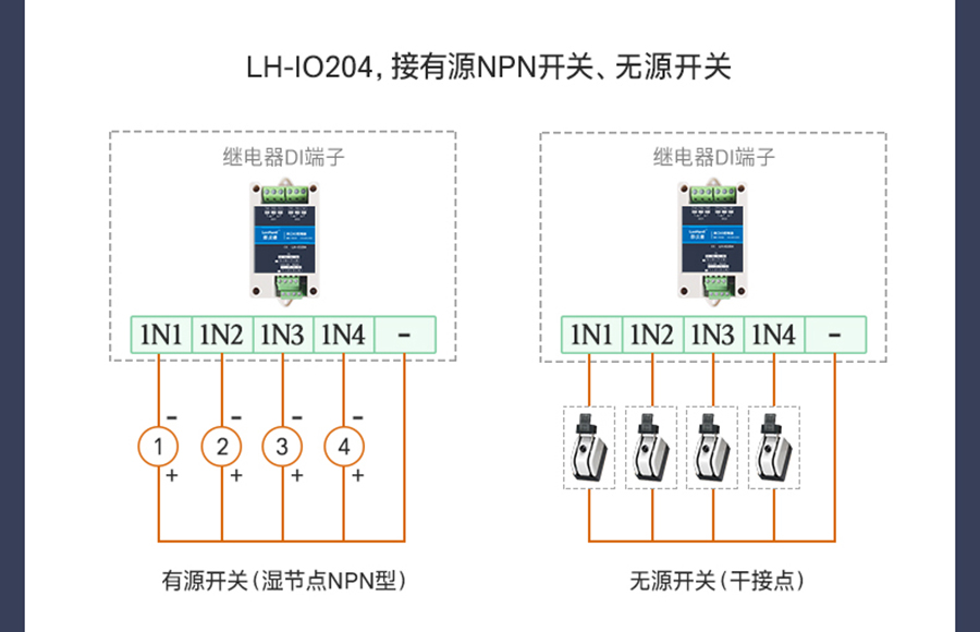 郎漢德品牌下的,LH-IO 系列產品是采用標準 Modbus- RTU 協議的繼電器設備,支持 RS485/232或網絡通信。支持寬電壓供電,多路輸入輸出控制,可廣泛應用于工業生產、農業、智慧城市、寫字樓等各類應用場景。本系列產品型號種類豐富,供用戶選擇。