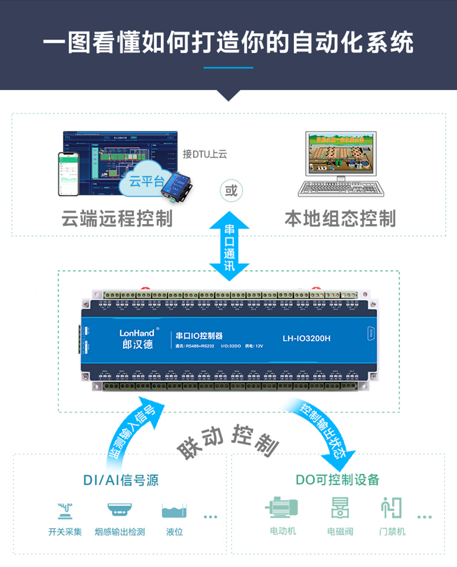 郎漢德品牌下的,LH-IO 系列產品是采用標準 Modbus- RTU 協議的繼電器設備,支持 RS485/232或網絡通信。支持寬電壓供電,多路輸入輸出控制,可廣泛應用于工業生產、農業、智慧城市、寫字樓等各類應用場景。本系列產品型號種類豐富,供用戶選擇