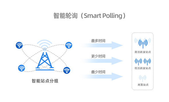 業(yè)界聞名的iPoll 3智能輪詢無線協(xié)議 iPoll 3 PTMP(點(diǎn)對多點(diǎn))專有協(xié)議是基于TDMA時(shí)分多址技術(shù)的創(chuàng)新無線協(xié)議,不僅可以消除傳輸擁堵和戶外遠(yuǎn)距離點(diǎn)對多點(diǎn)傳輸場景中產(chǎn)生的自身干擾,更能通過最新的智能輪詢機(jī)制根據(jù)已連接站點(diǎn)的活躍度對站點(diǎn)進(jìn)行分組,需要更少帶寬的站點(diǎn)被分到低活躍或空閑組,分配更少的通信時(shí)長(輪詢次數(shù)更少),而需要更大流量或帶寬的站點(diǎn)被分到活躍組,分配更多的通信時(shí)長(輪詢次數(shù)更多)。通過減少輪詢站點(diǎn)的總次數(shù),實(shí)現(xiàn)更低的延遲和更高的總吞吐量,即使是1對64以上的點(diǎn)對多點(diǎn)組網(wǎng),網(wǎng)絡(luò)整體效率也不會出現(xiàn)明顯的下降。