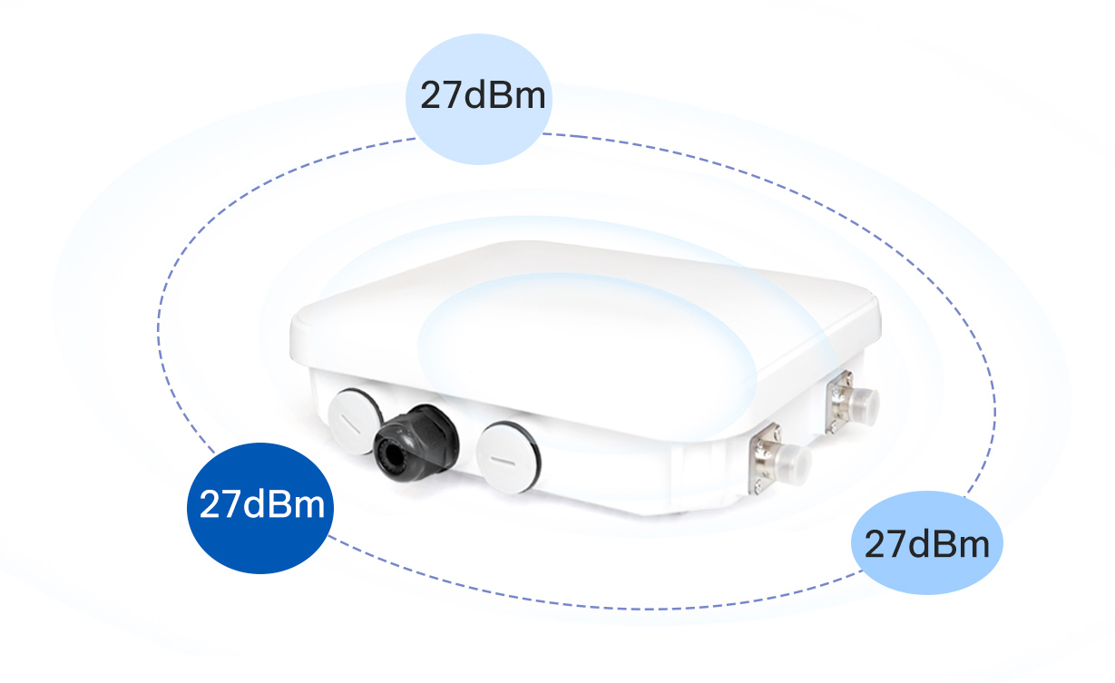 內(nèi)置定向天線(扇形120度) (5GHz:11dBi, 2.4GHz: 8dBi)