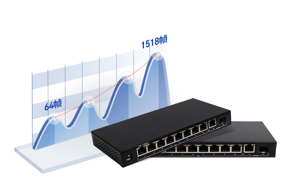 全線速轉(zhuǎn)發(fā) 所有端口均支持線速轉(zhuǎn)發(fā),64~1518 幀長均可達(dá)到線速。