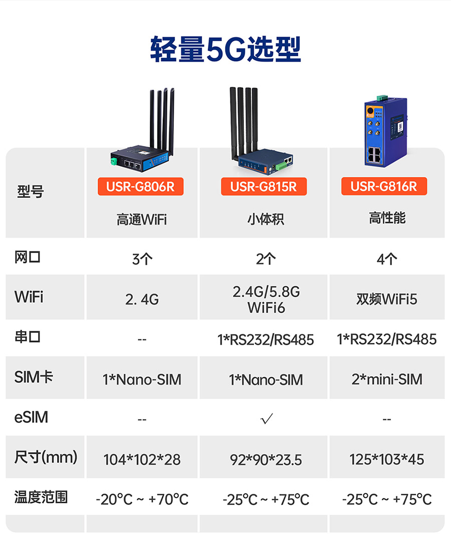 快速鏈接: 多功能數采儀 USR-SC系列 可拓展的物聯網控制器 USR-EG628 真工業級交換機 USR-ISG系列 Wi-Fi加強版4G工業路由器 USR-G806w 5G路由器天花板WiFi6 USR-G817 積木式邊緣網關 USR-M300 4G 口紅DTU USR-DR154 4G商用路由器 USR-G805s