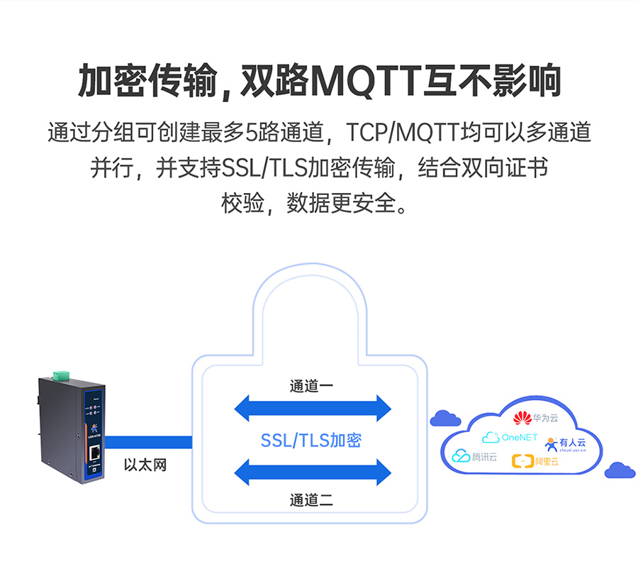 5路,2路TCP連接+2路MQTT+1路有人云,支持SSL/TLS加密