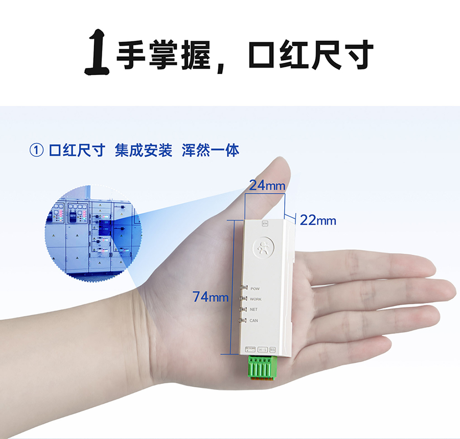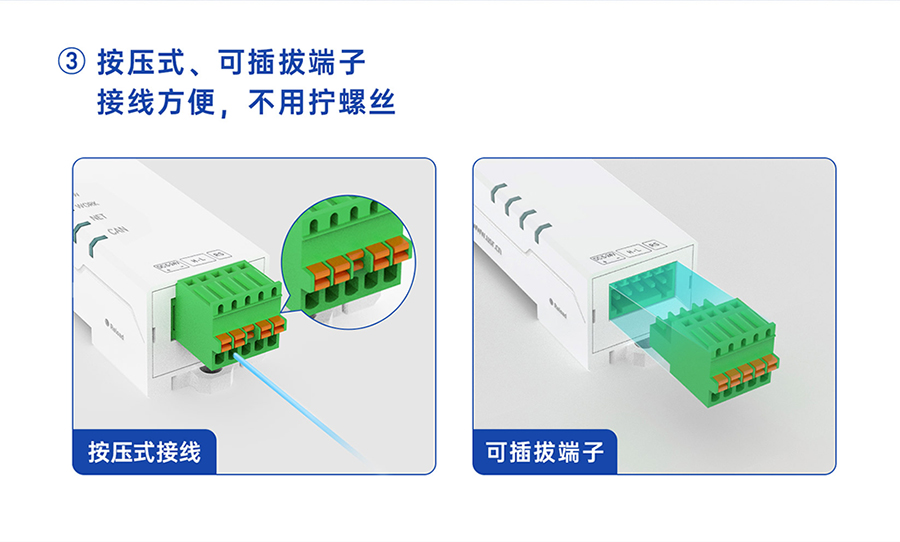 1路CAN口,支持標準CAN2.0A/B,按壓端子接線