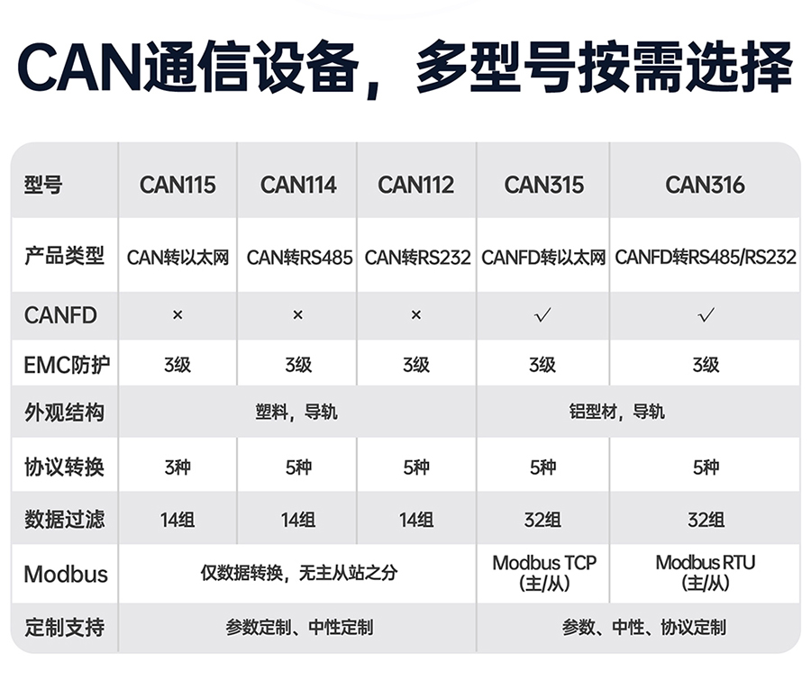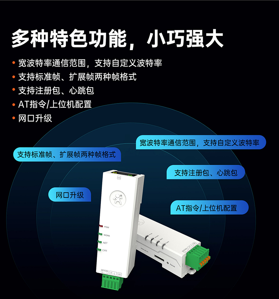 支持雙向轉換、僅網口轉CAN、僅CAN轉網口