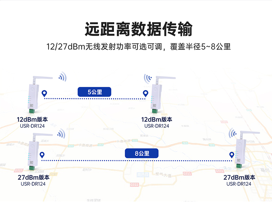 測試條件:晴朗、空曠環境,天線增益3dBi,高度大于2m