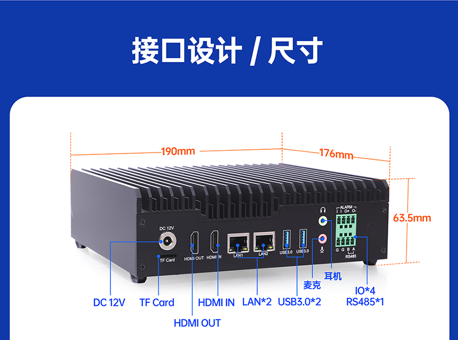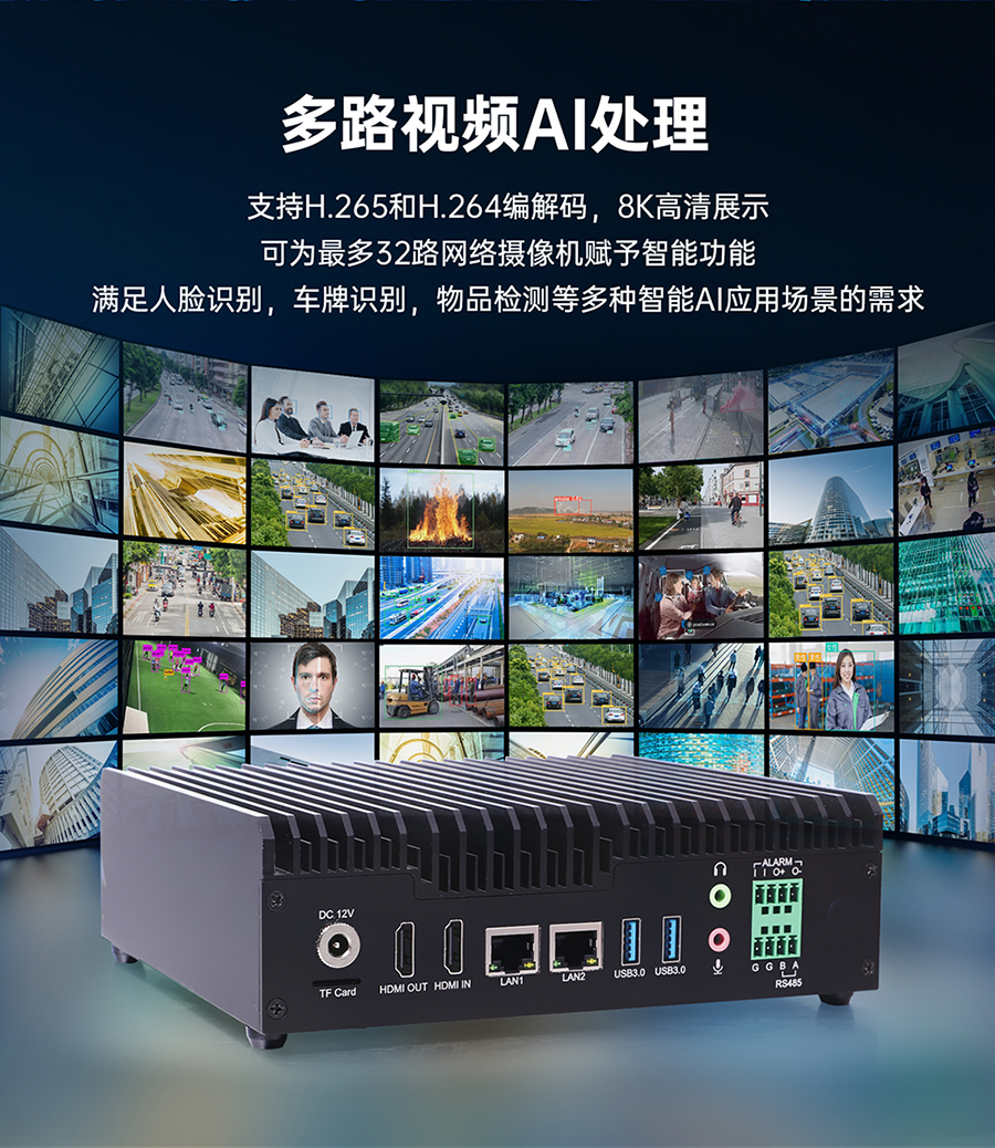 Ubuntu系統(tǒng),8核64位處理器 6Tops算力,32路視頻分析 3網(wǎng)口4USB,HDMI輸入和輸出
