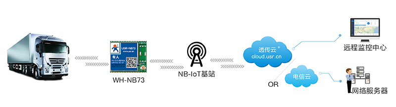 4、異常數據通過WH-NB73、透傳云傳輸至遠程監控中心/服務器,預警提示工作人員,實時查看車輛信息,快速進行調度、安排