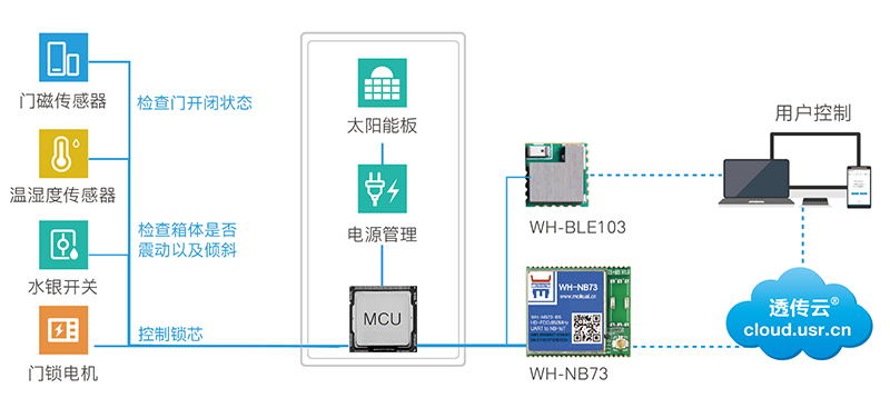 穩恒科技提供的光交箱一站式通訊方案,通過NB-IoT+BLE技術,實現對光交箱門鎖的遠程控制、鎖狀態采集以及近場BLE通信應急開鎖。同時,NB-IoT設備可直接對接有人透傳云,大幅縮短項目周期和項目復雜度。