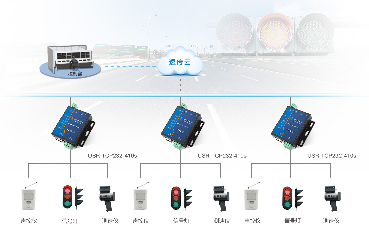3、網絡數據經由透傳云上報服務器,方便控制室監管人員隨時查看交通路況,并根據需要遠程控制信號燈明滅切換