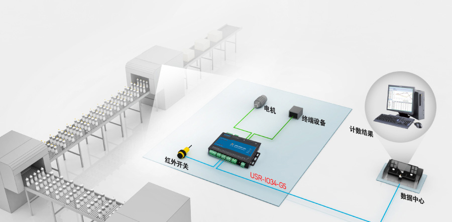 工業自動化生產線項目,可通過IO設備實現產線監控,如通過紅外開關進行產線數量監測,或通過輸出接口連接電機進行啟停控制。
